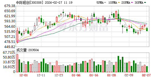 数据宝统计,截至10:54,中际旭创成交额100.04亿元,超100亿元。最新股价下跌5.83%,换手率1.65%。上一交易日该股全天成交额为143.40亿元。