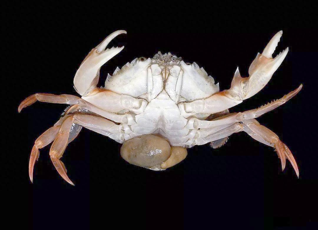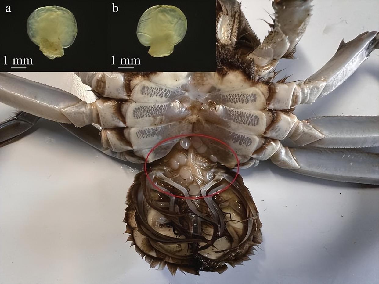 然后,神奇的事情发生了:雄蟹的腹部会逐渐变宽,变得像雌蟹一样。它的交尾肢缩短,螯足变小,精巢也逐渐的退化。在有些地区,被寄生的雄蟹甚至会长出4对抱卵肢,这可是雌蟹才有的器官。